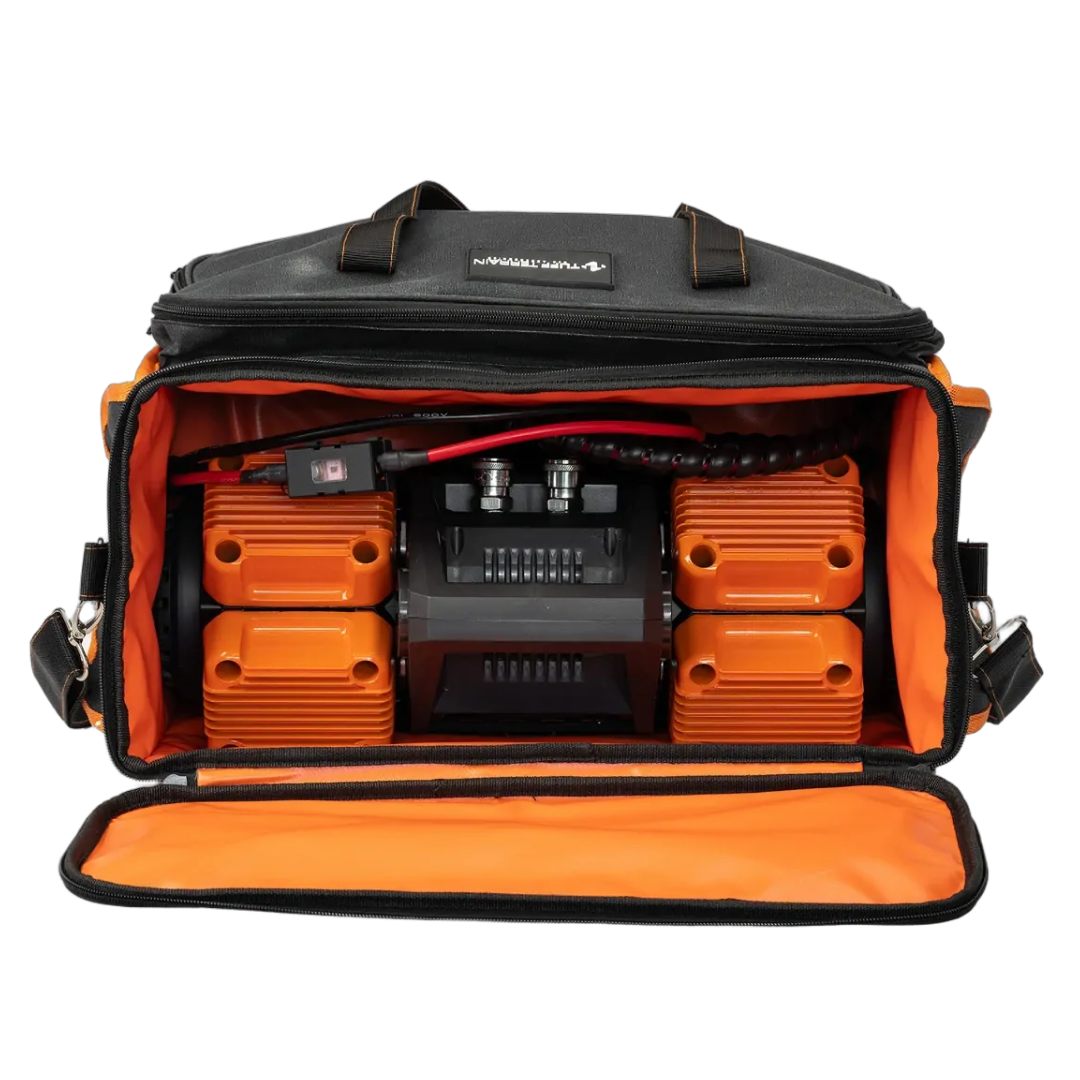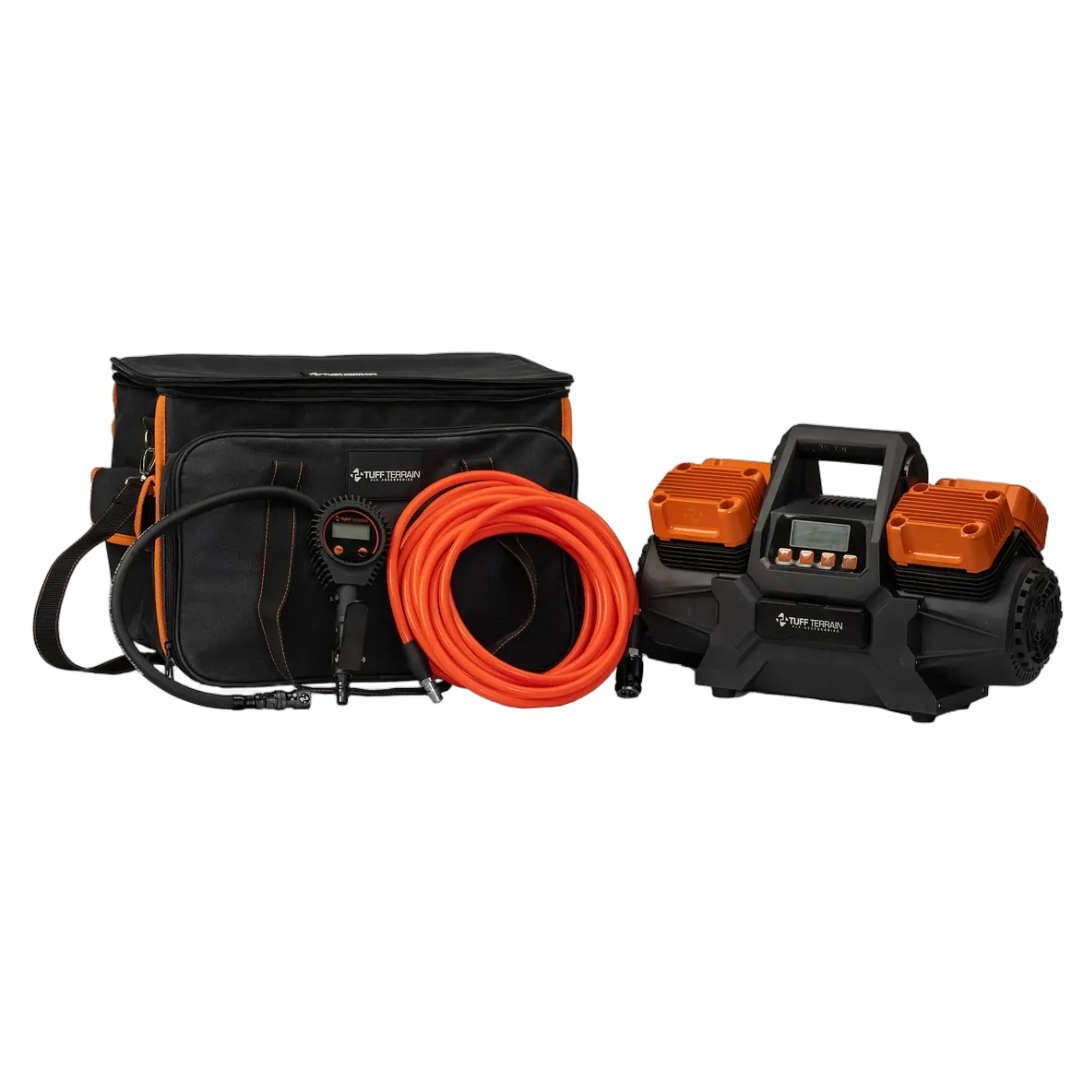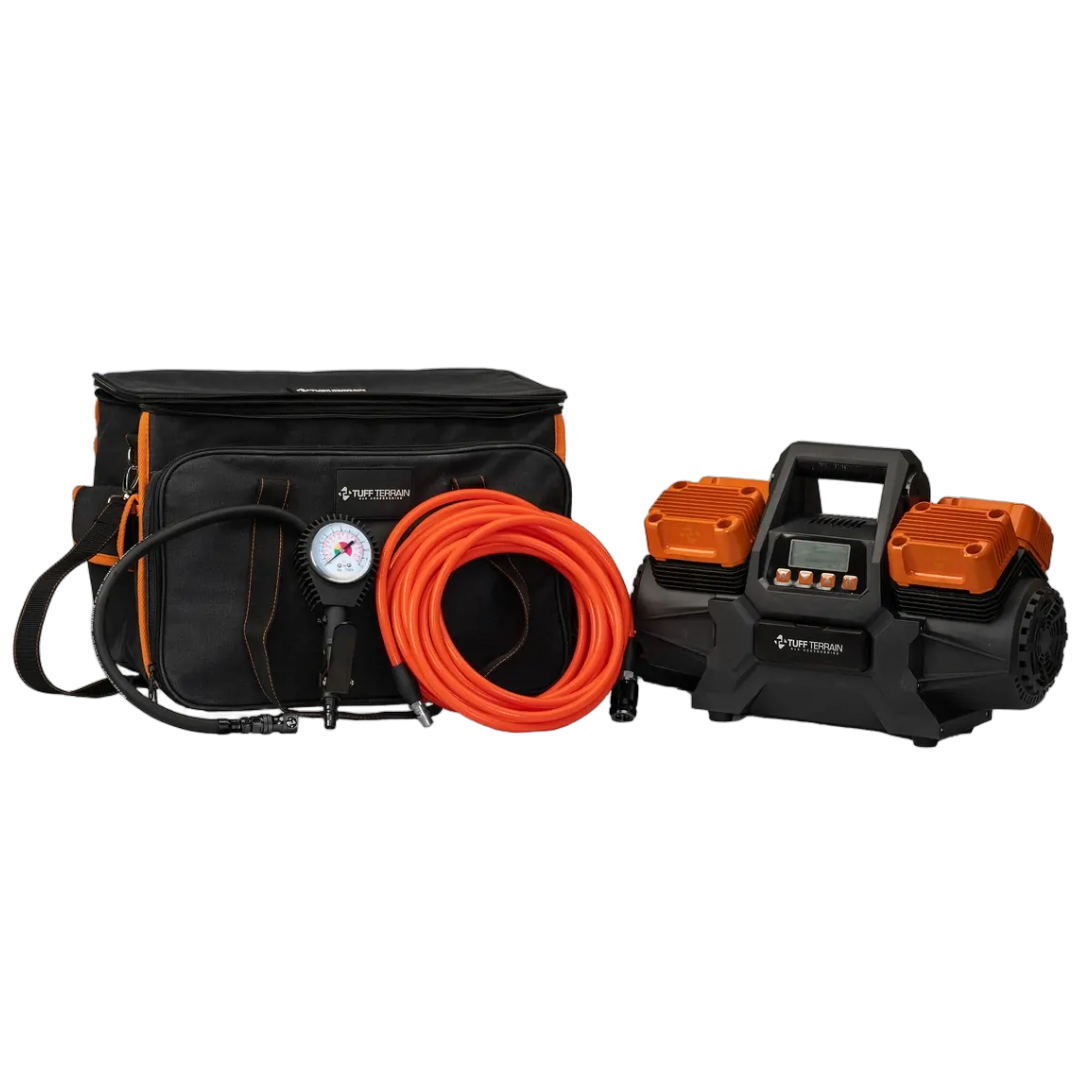 Meet the Tuff Terrain V4 High Output Compressor - the ultimate off-road essential built for serious adventurers who demand power, speed, and reliability! Whether you’re inflating tyres after a beach run or powering air tools on the trail, the V4 delivers massive airflow, lightning-fast inflation, and rugged dependability in every situation. Designed for both portability and performance, this compressor makes sure you’re never caught unprepared - no matter how tough the terrain gets!